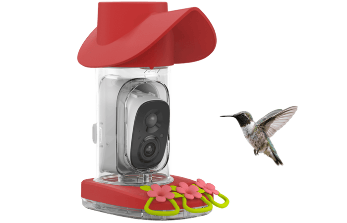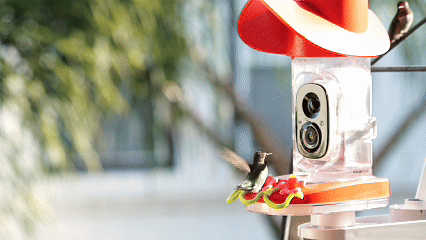 Solar-powered feeder camera ensures 24/7 bird watching. -